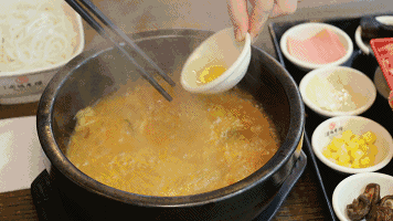 滋滋啦啦的湯底上桌