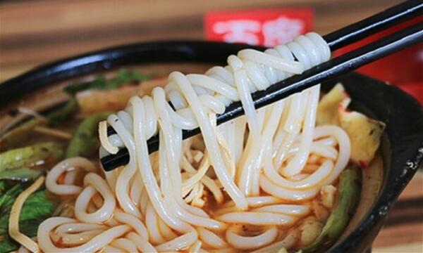 5、放入米線5-10秒后攪拌均勻,即可