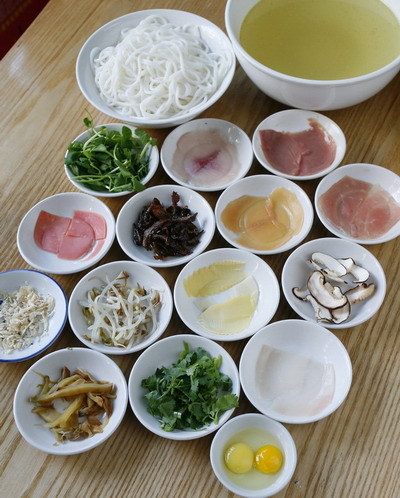 南北方的過橋米線湯底大體相同,只是在配菜上適當添加了符合當地口味和飲食習慣的菜品。營養(yǎng)價值不言而喻。